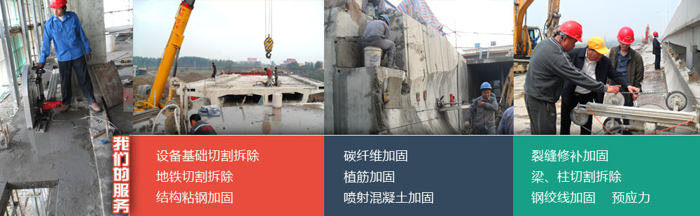 擁有自行研發(fā)生產的專業(yè)性混凝土切割機設備:液壓繩鋸機8臺、液壓墻鋸機4臺、液壓鉆孔機10臺,電動鉆孔機20臺